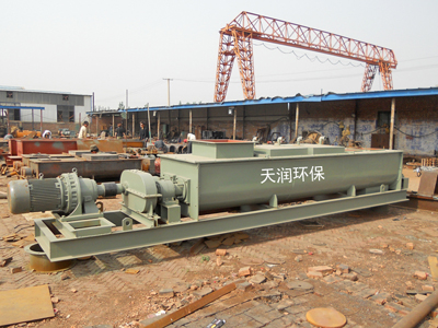 粉塵加濕機(jī)由二組螺旋葉片機(jī)均勻供料進(jìn)入主機(jī),把進(jìn)入混料槽/攪拌槽的干灰粉狀物料由給水裝置定量供給的水進(jìn)行強(qiáng)制混合、攪拌,同時(shí)將符合濕度要求的物料輸送至出料口排出,達(dá)到消除揚(yáng)塵的目的。