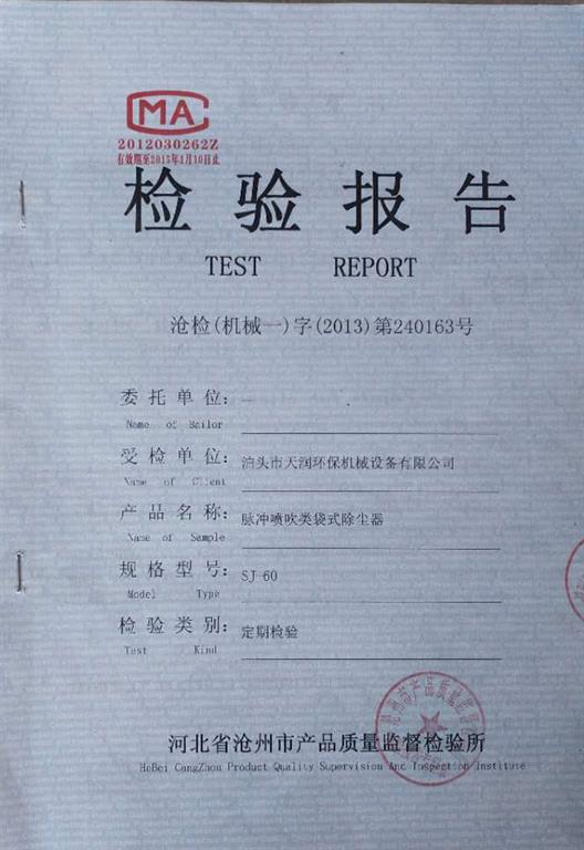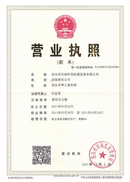 除塵器布袋骨架|除塵器濾袋-公司資質(zhì) -泊頭市天潤環(huán)保機(jī)械設(shè)備有限公司