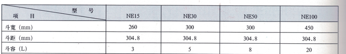 NE斗式提升機(jī)料斗注: 1. 表中斗容為計(jì)算斗容,輸送量按填充系數(shù)0. 6計(jì)算得出。 2. 斗提機(jī)料斗用途: 淺料斗:輸送潮濕、易結(jié)塊、難拋出的物料,如濕沙、濕煤等。 深料斗:輸送干燥的、松散的、易拋出的物料,如水泥、煤塊、碎石等。